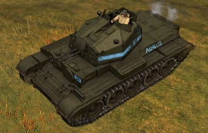 The Centaur AA Mk. II Cruiser Tank is a relatively slow but lethally armed and fairly well armored AA tank. With twin 20mm Polsten guns, the Centaur is perfect for literally mowing down infantry and planes, serving as a hard counter to infantry (especially blobs) and even anti-tank guns. The guns can also penetrate light armor, making it very deadly verses light vehicles as well. However, it is very sluggish, just a hair faster than the mighty Tiger II, but enjoys good armor and same health as most other medium tanks.