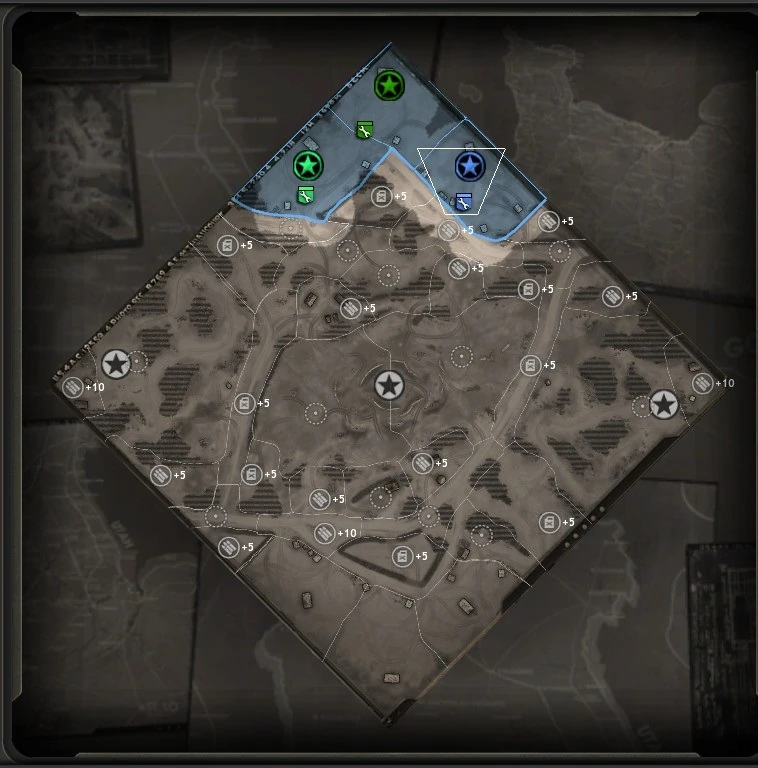 - The two roads that run alongside the central hill each have a +5 fuel point on them. Often the opening minutes of the game is a fight to lock down these two points to gain a fuel advantage for your team. Small nearby buildings and impassible cliffs above these fuel points can offer good positions for machine guns to cover these points.