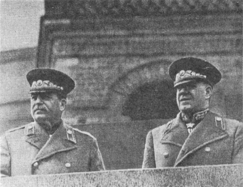 From left to right, Stalin, Zhukov watching the May Day parade